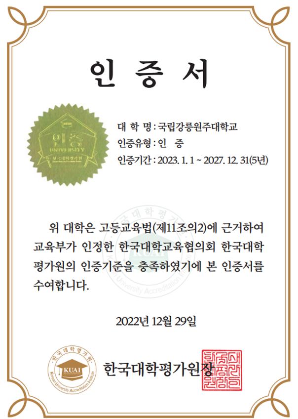 *인증 기간: 2023. 1. 1. ~ 2027. 12. 31.(5년)